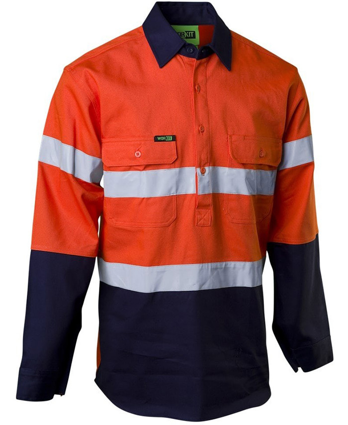 3. Hi-Vis 2 Tone Closed Front Dual Weight Welders Taped Shirt