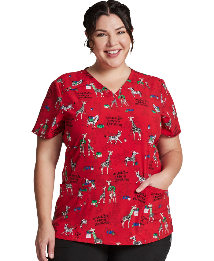 WORKWEAR, SAFETY & CORPORATE CLOTHING SPECIALISTS - V-Neck Print Top in Wish Zoo A Merry Christmas