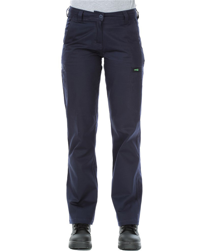 Sizes 6-24 Colours: Navy 100% Cotton drill preshrunk 240gsm Style Traditional cargo pants for women that strike the perfect balance between appearance and functionality Two front angled stylish pockets Back patch pocket on the right side Multifunctional internal pockets on both legs closed by hook and loop Seven belt loops